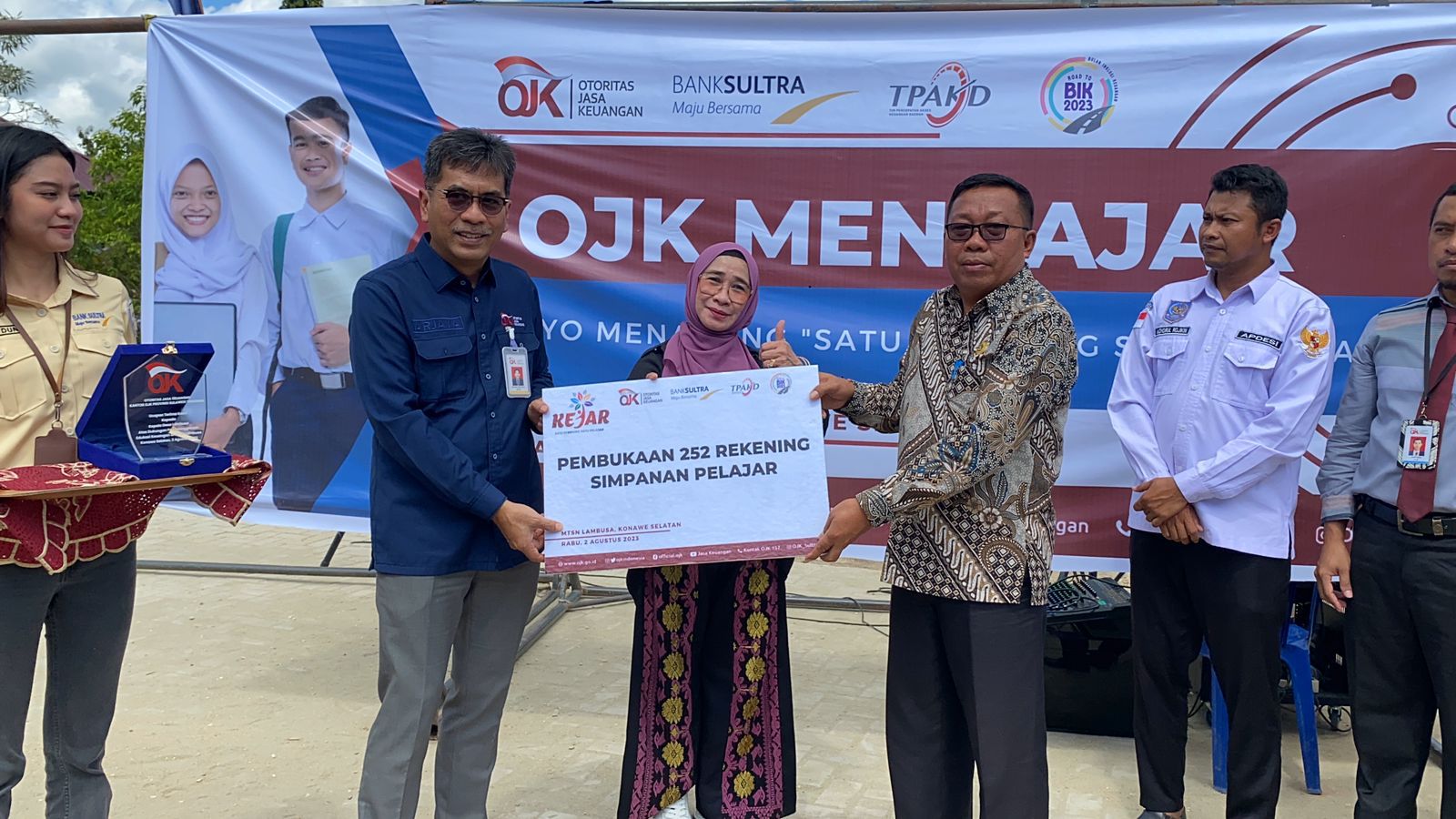 Kendari, tirtamedia.id – Otoritas Jasa Keuangan (OJK) dan Bank Pembangunan Daerah (BPD) atau Bank Sulawesi Tenggara (Sultra) bekerjasama untuk membuatkan rekening Simpanan Pelajar (Simpel) sebanyak 260 rekening bagi siswa MTS Negeri (MTSN) 1 Konawe Selatan (Konsel) pada Rabu (2/8/2023).