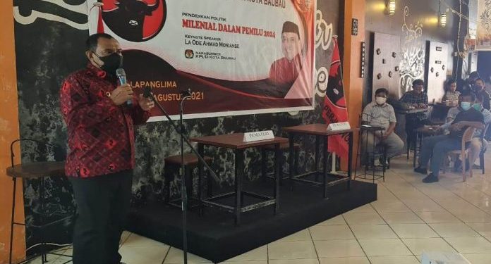 Pemateri dalam kegiatan ini, Ketua DPC PDIP Baubau, La Ode Ahmad Monianse, Ketua KPUD Kota Baubau, Edy Sabara dan anggota KPUD Baubau, La Ode Supardi.