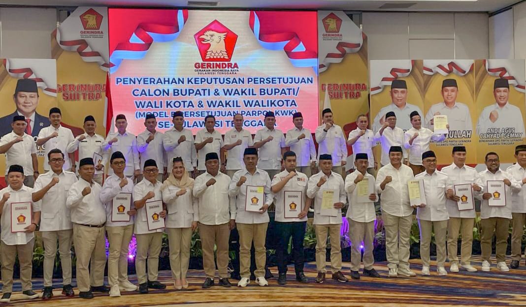 Berikut daftar bakal pasangan calon (Paslon) kepala daerah Bupati/Wali Kota usungan Partai Gerindra di Pilkada Sulawesi Tenggara 2024 :