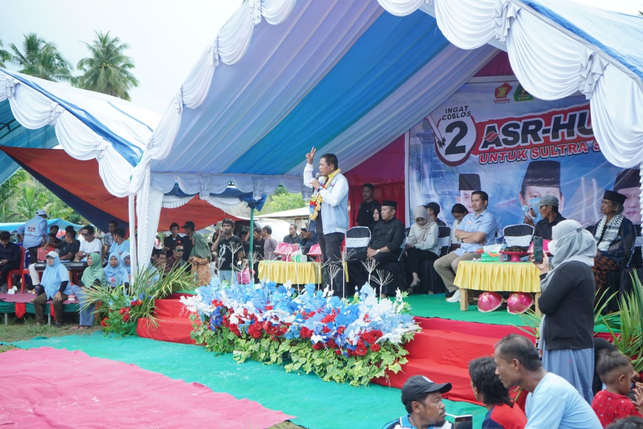 BUTUR, tirtamedia.id – Calon Wakil Gubernur Sulawesi Tenggara (Sultra), Hugua, melakukan kampanye terbatas di Desa Damai Laborona, Kecamatan Bonegunu, Kabupaten Buton Utara, pada Senin (4/11/2024).