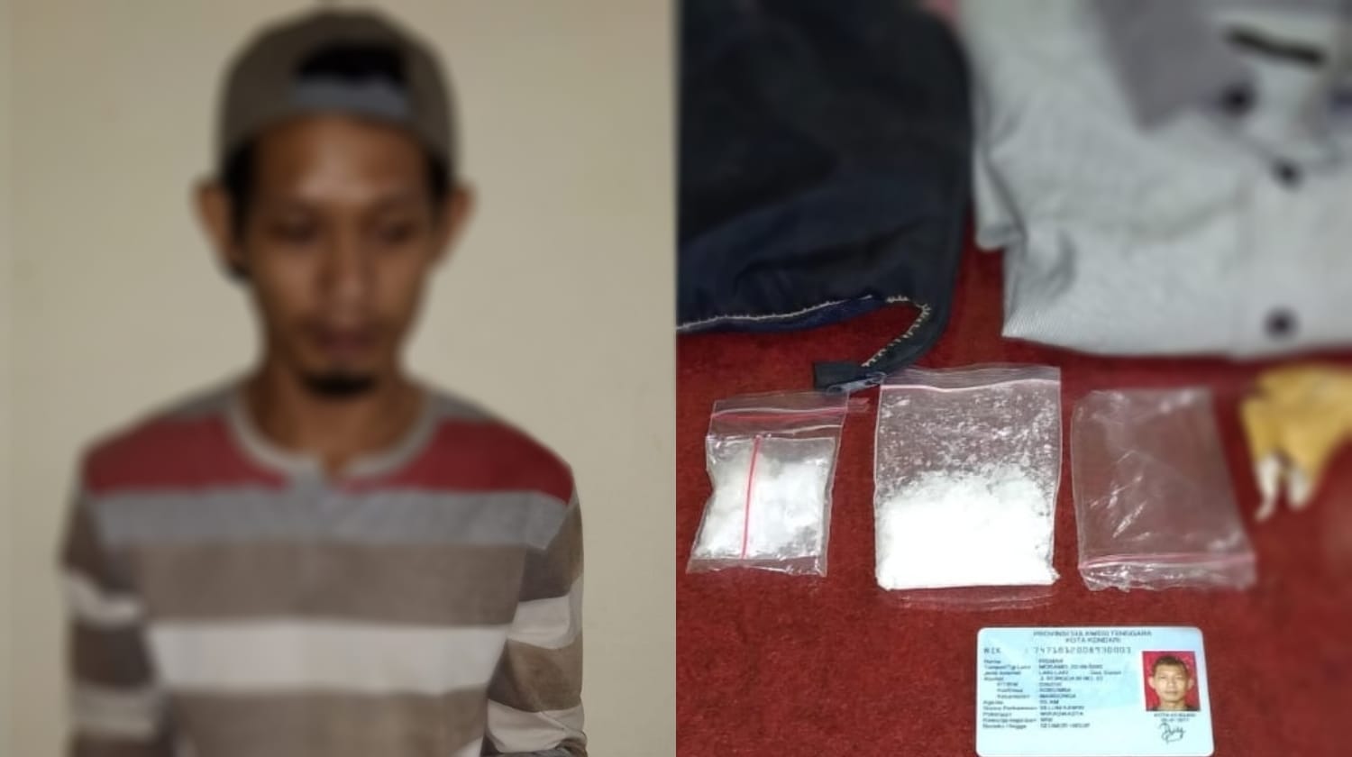 Pria yang berprofesi sebagai seorang wiraswasta ini diamankan oleh Tim Opsnal Unit 1 Subdit III Ditresnarkoba Polda Sultra dalam sebuah kos-kosan yang terletak di Jalan Chairil Anwar, Kelurahan Mataiwoi, Kecamatan Wuawua, Kota Kendari.