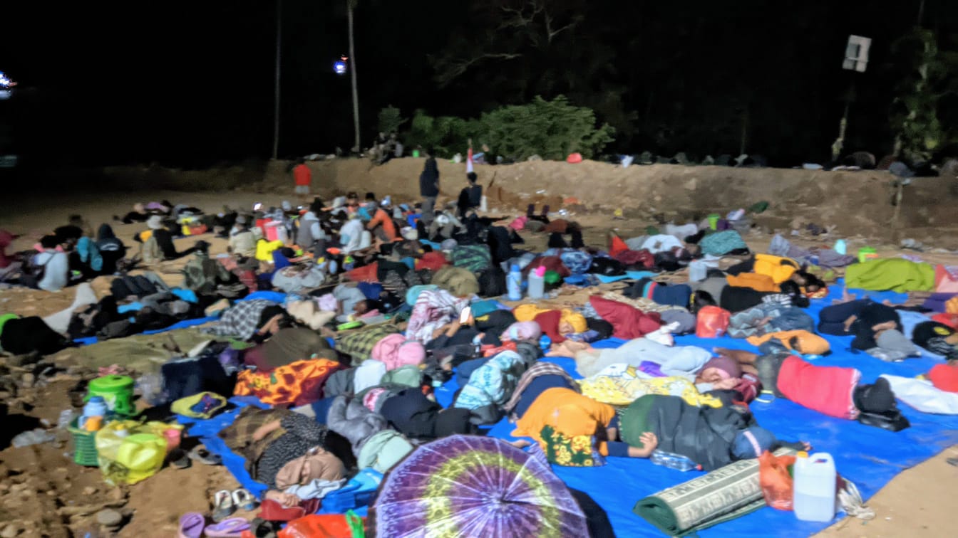 Dari vidio berdurasi 2 menit 50 detik, nampak emak-emak beralaskan terpal biru menjadi alas mereka untuk tidur. Beberapa diantaranya saling bercerita dengan yang lainnya.