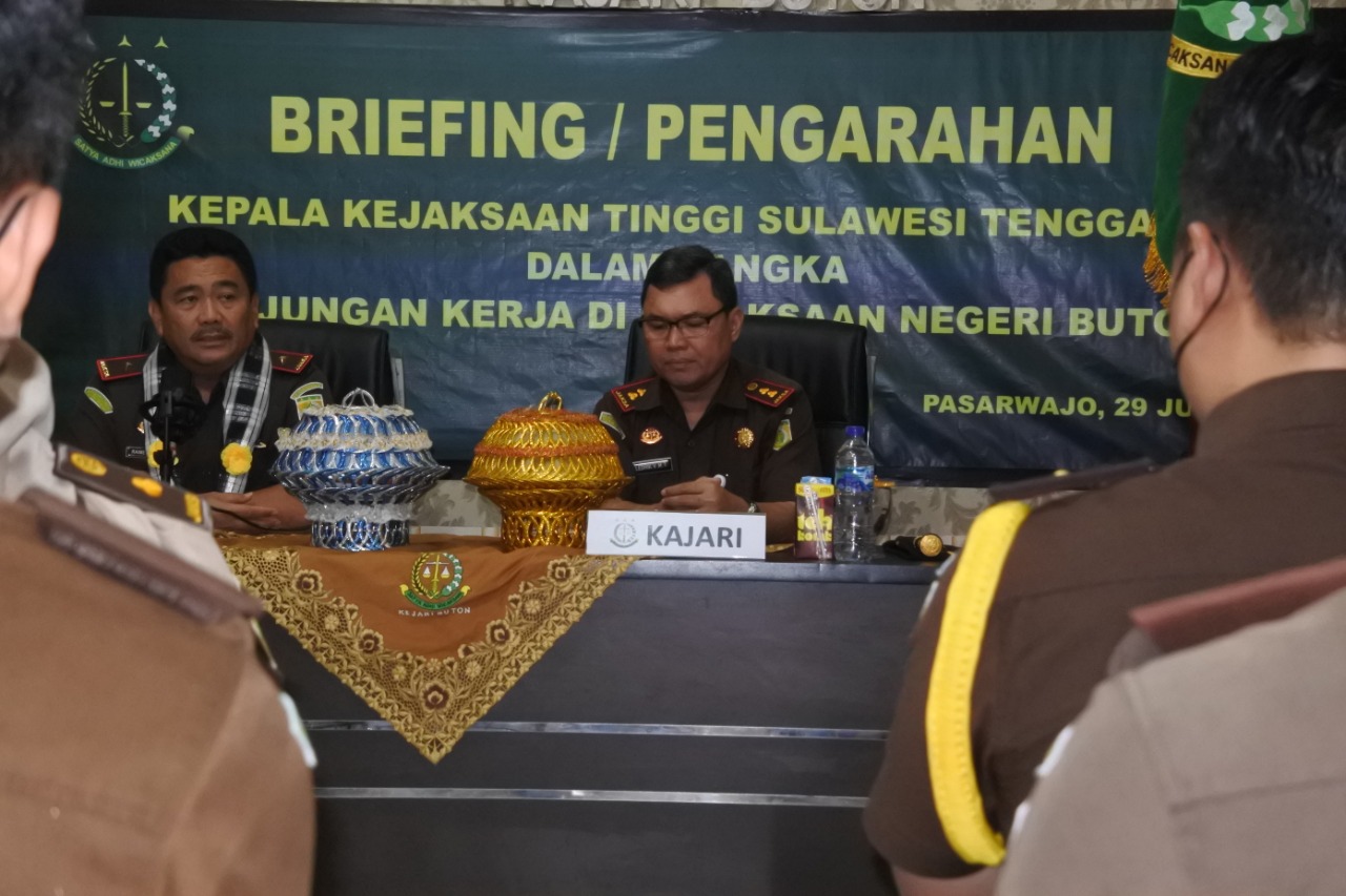 KENDARI, Tirtamedia.id – Untuk memantau Kinerja Kejaksaan Negeri (Kejari) Buton, Kepala Kejaksaan Tinggi (Kajati) Sulawesi Tenggara (Sultra) Raimel Jesaja, melakukan kunjungan kerja di kantor Kejari Buton pada Rabu (29/6/2022).