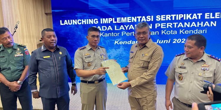 KENDARI, tirtamedia.id – Pemerintah melalui Kementerian ATR/BPN telah mengubah sertifikat tanah menjadi sertifikat elektronik. Perubahan bentuk sertifikat resmi diluncurkan di Kantor Walikota Kendari Senin (10/06/2024).