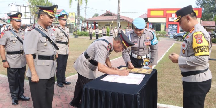 Pergantian ditandai dengan upacara serah terima jabatan (Sertijab) dipimpin oleh Kapolresta Kendari Kombes Pol Muhammad Eka Fathurrahman.