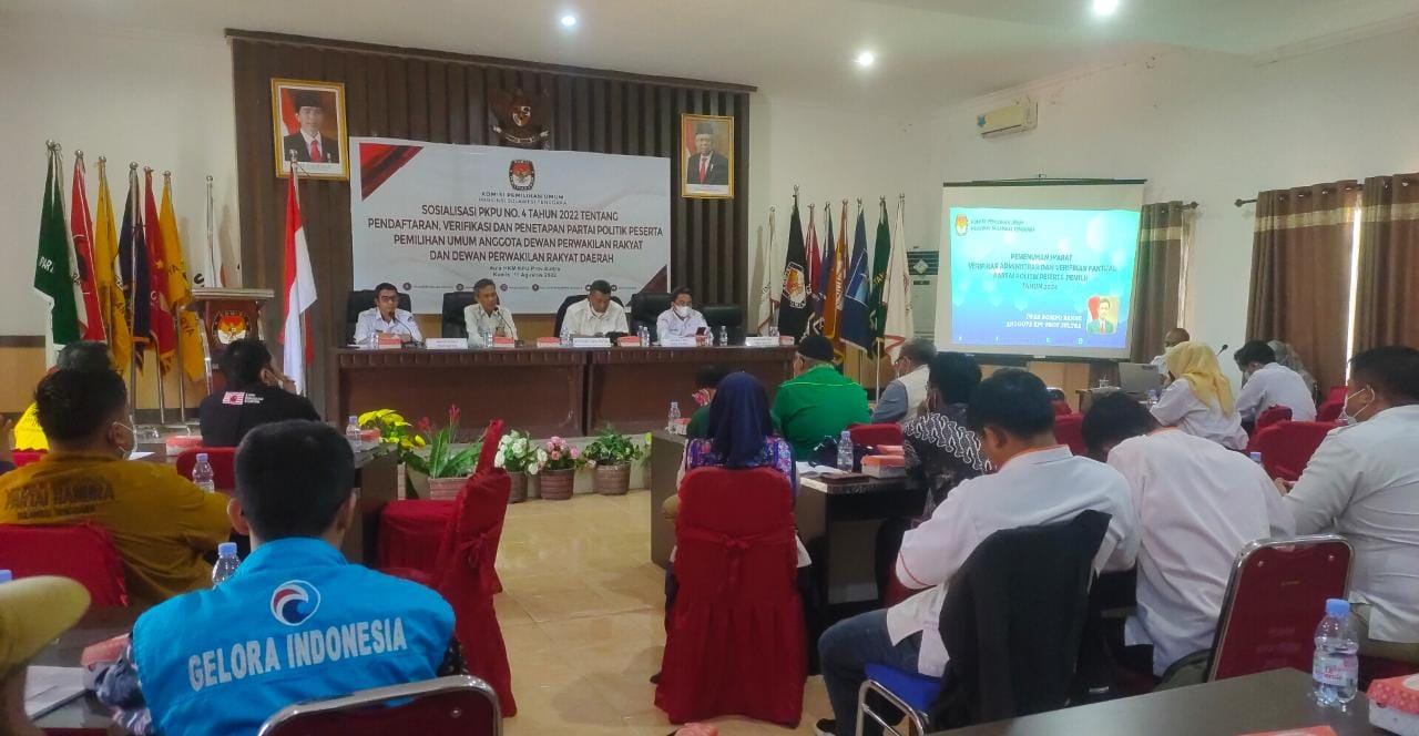 Saat ini, KPUD Sultra tengah melakukan sosialiasi Peraturan KPU Nomor 4 Tahun 2022 tentang pendaftaran, verifikasi dan penetapan partai politik peserta pemilihan umum anggota Dewan Perwakilan Rakyat (DPR) dan Dewan Perwakilan Rakyat Daerah (DPRD) di aula HKM KPUD Provinsi Sultra, Kamis (11/8/2022).