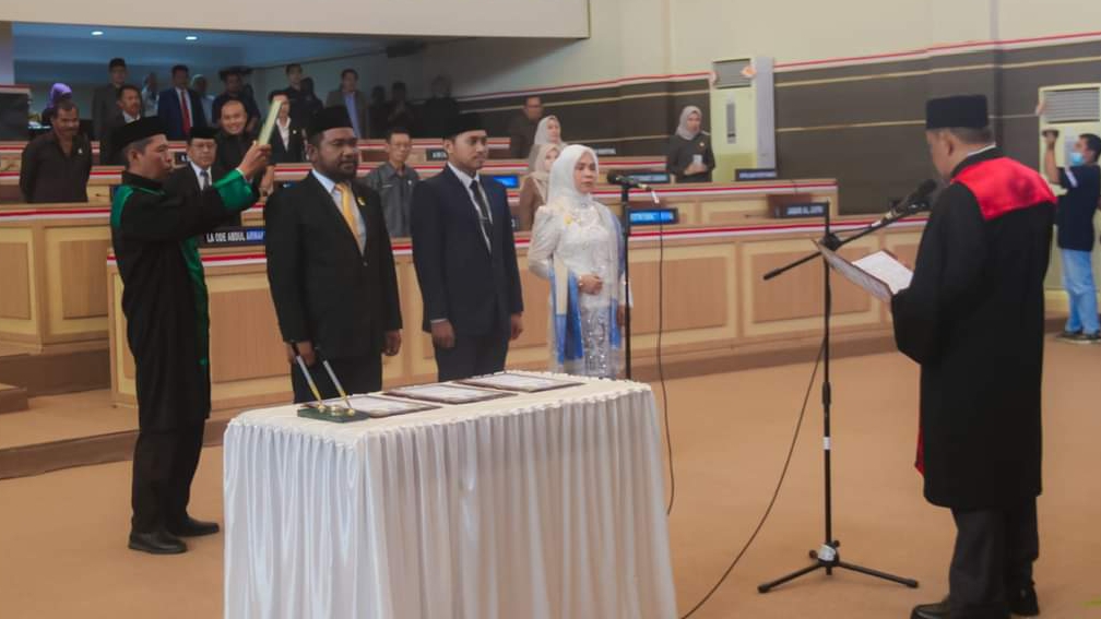 Pada perlantikan, La Ode Muhammad Inarto dari Partai Golkar dilantik sebagai Ketua DPRD, sementara Rizky Brilian Pagala dari Partai Keadilan Sejahtera diangkat sebagai Wakil Ketua I, dan Irmawati dari Partai Nasdem sebagai Wakil Ketua II.