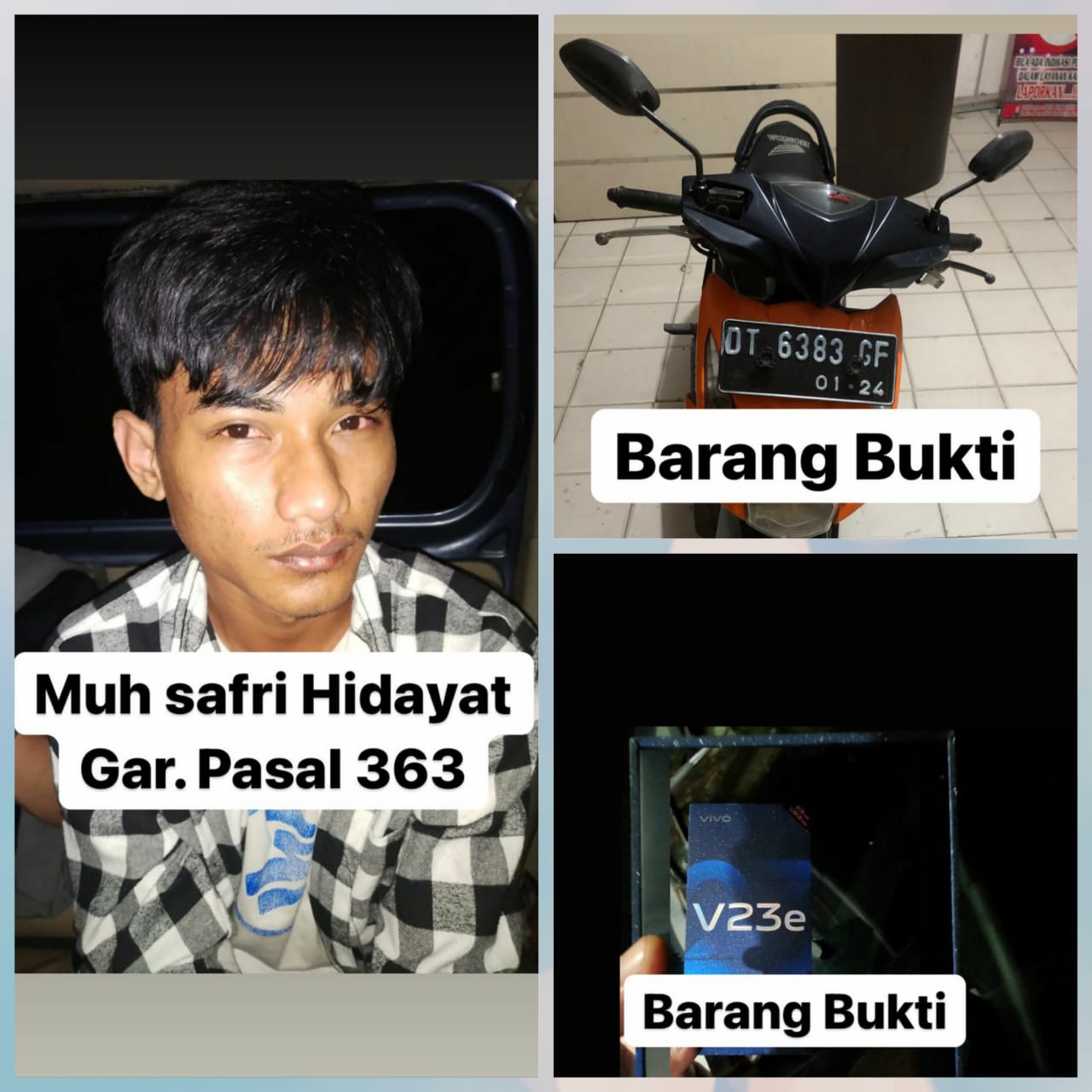 Usai diamankan, pelaku langsung dibawa ke Polresta Kendari untuk ditindaklanjuti. Polisi juga mengamankan barang bukti berupa 1 buah handphone dan unit motor. Akibat perbuatannya pelaku dijerat Pasal 363 KUHP Pidana dengan ancaman hukuman 7 tahun penjara.