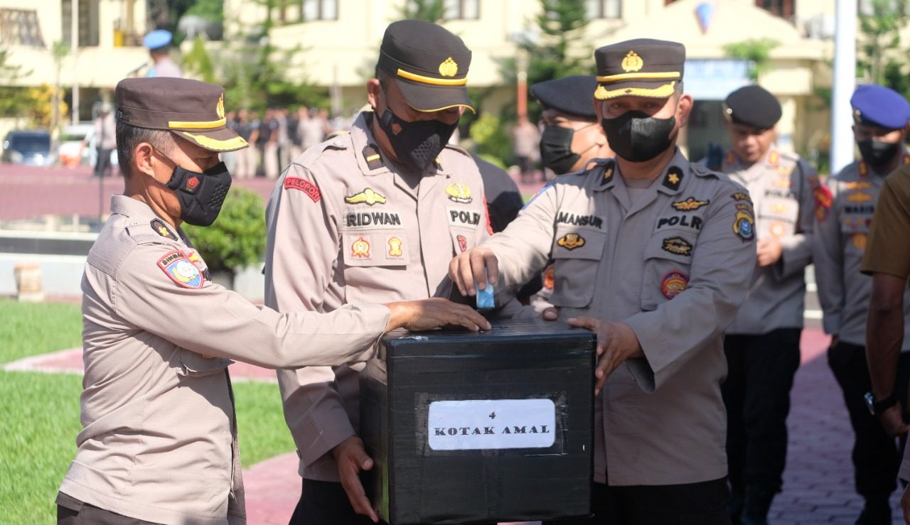Kabid Humas Polda Sultra, Kombes Pol Ferry Walintukan mengatakan, usai pelaksanaan apel pagi di Lapangan Presisi Polda Sultra, ratusan personel dari jajaran Satker memberikan sumbangan sukarela.