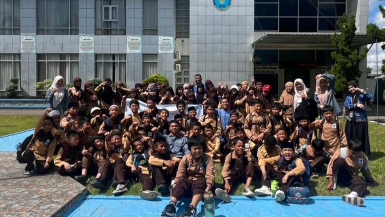 16 pelajar SMP Negeri 18 Kendari dan 69 pelajar SD Islam Insan Unggul, studi tour di BNNP Sultra, Jumat (17/10/2025). (Foto: Istimewa)