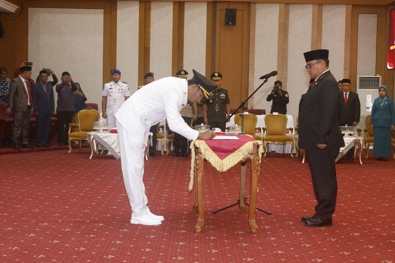 Kendari, tirtamedia.id – Penjabat (Pj) Gubernur Sulawesi Tenggara (Sultra), Andap Budhi Revianto, resmi melantik H. Yusmin sebagai Penjabat Bupati Kolaka Utara di Ruang Pola Kantor Gubernur Sultra pada Kamis (12/09/2024). Yusmin, yang sebelumnya menjabat sebagai Kepala Dinas Pendidikan dan Kebudayaan Pemprov Sultra, diangkat berdasarkan Keputusan Mendagri Nomor 100.2.1.3-3657 Tahun 2024.