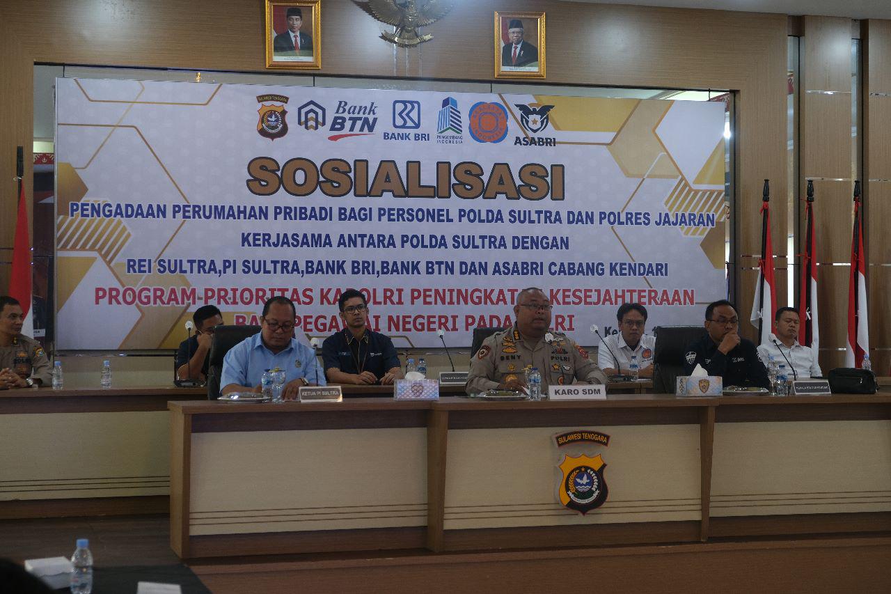 KENDARI, Tirtamedia.id – Meningkatkan kesejahteraan bagi pegawai negeri pada Polri. Biro SDM Polda Sultra sosialisasi pengadaan perumahan pribadi bagi personel dengan bekerja sama Real Estate Indonesia (REI) dan Himbara Rabu (10/5/2023).