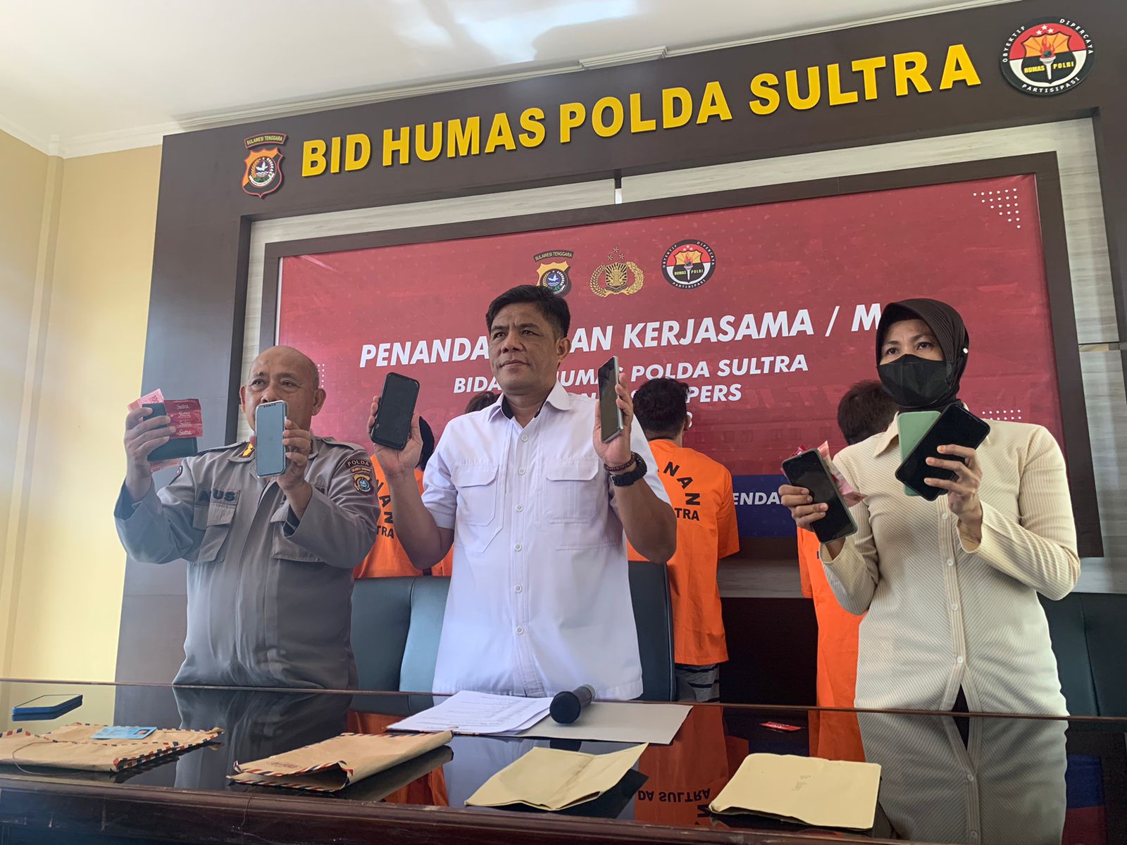 Polda Sultra menangkap lima orang pelaku masing-masing Farhan (18) warga Jalan Pasaeno Kadia, Ardiansyah alias Ardi Koko (19) warga Jalan Lasolo Kendari Barat, Muis alias Anca (37) warga Jalan Chairil Anwar Wua Wua, Suardi (21) warga Desa Silea Konsel, dan Aras Rahim warga Jalan Taridala Mandonga.