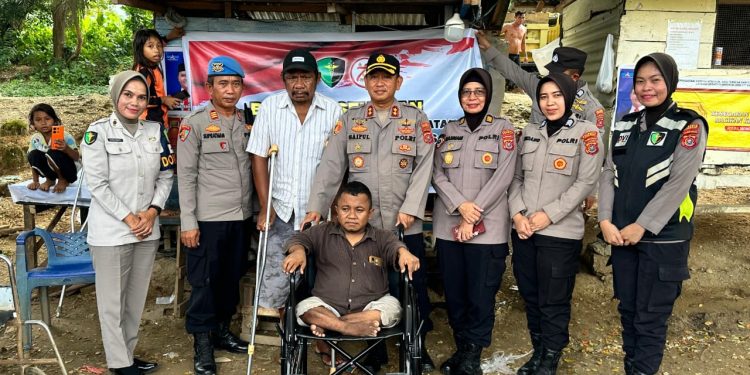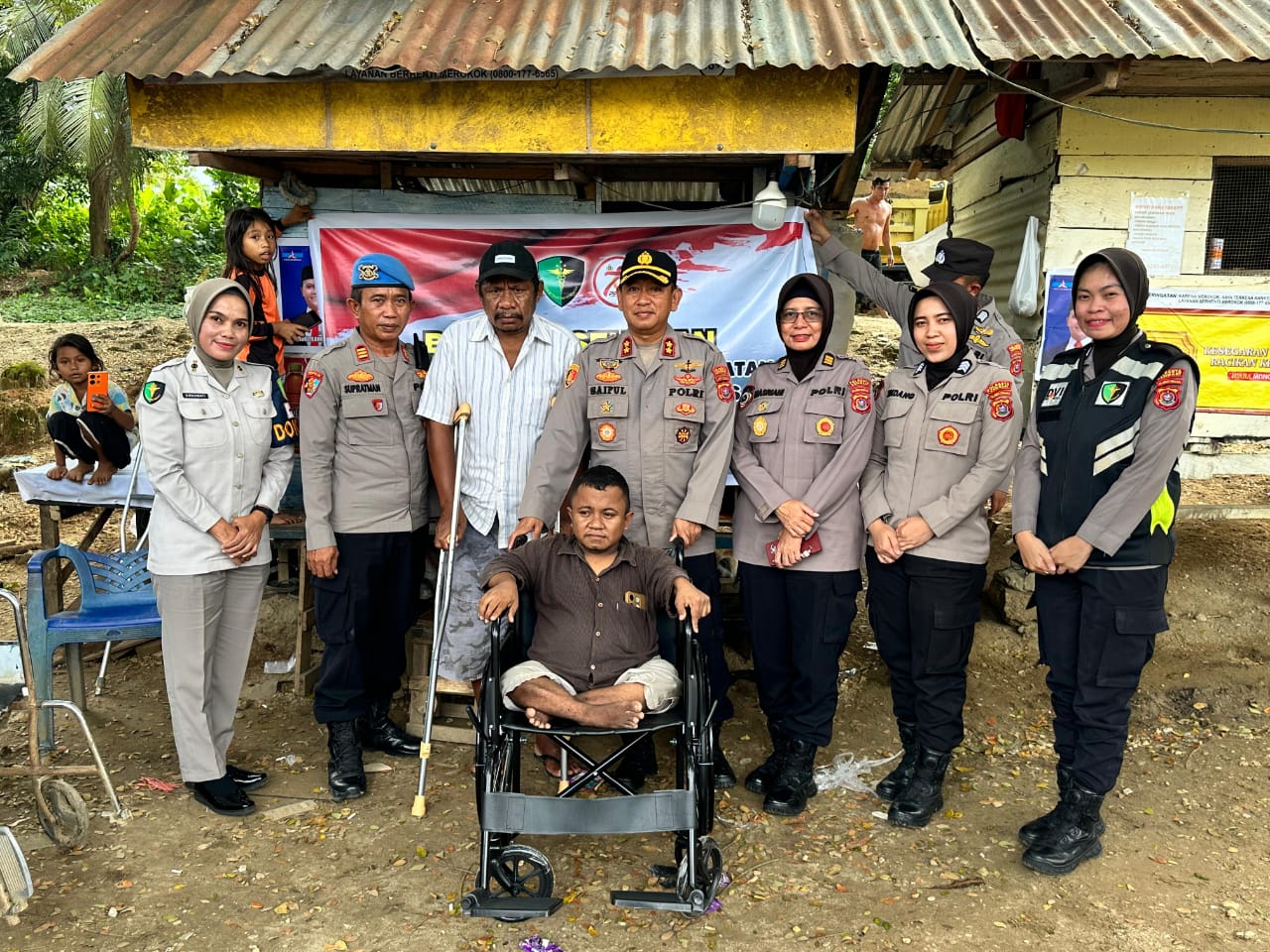 Alat bantu berjalan berupa kursi roda dan tongkat kruk diserahkan langsung ke rumah-rumah warga penyandang disabilitas oleh Wakapolresta Kendari, AKBP Saiful Mustofa bersama jajaran.