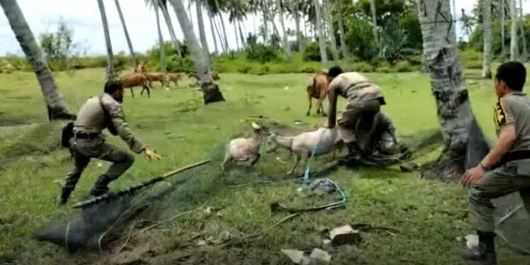 KOLAKA, tirtamedia – Puluhan Satuan Polisi Pamong Praja (Satpol PP) di Kecamatan Watubangga, Kabupaten Kolaka, Sulawesi Tenggara terlibat kejar-kejaran dengan hewan ternak sapi dan kambing milik warga yang berkeliaran.