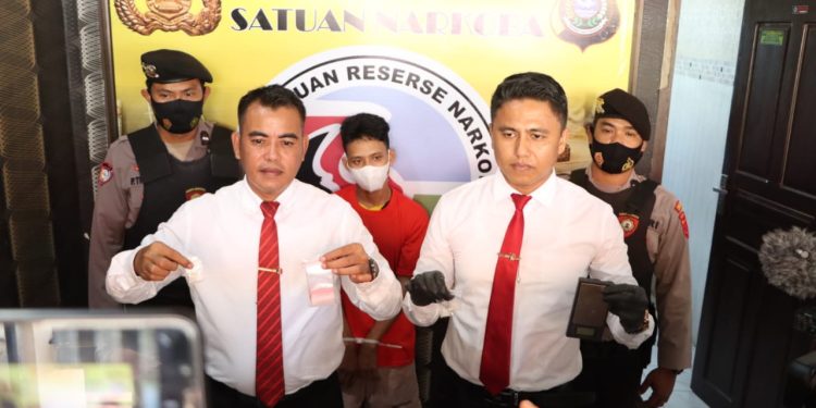 Setelah mendapat informasi tersebut, pada Senin (27/6/2022 ) sekira pukul 02.00 WITA, Tim Opsnal Satresnarkoba Polresta Kendari menuju lokasi dan mengamankan tersangka.