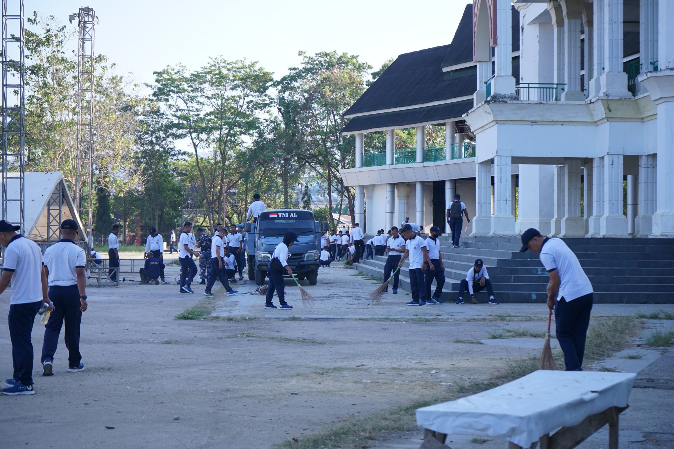 KENDARI, tirtamedia.id – Ratusan Personel Pangkalan TNI Angkatan Laut (Lanal) Kendari menggelar aksi bersih-bersih di Pelataran Tugu Eks MTQ Kendari. Jumat (29/09/2023) pagi.