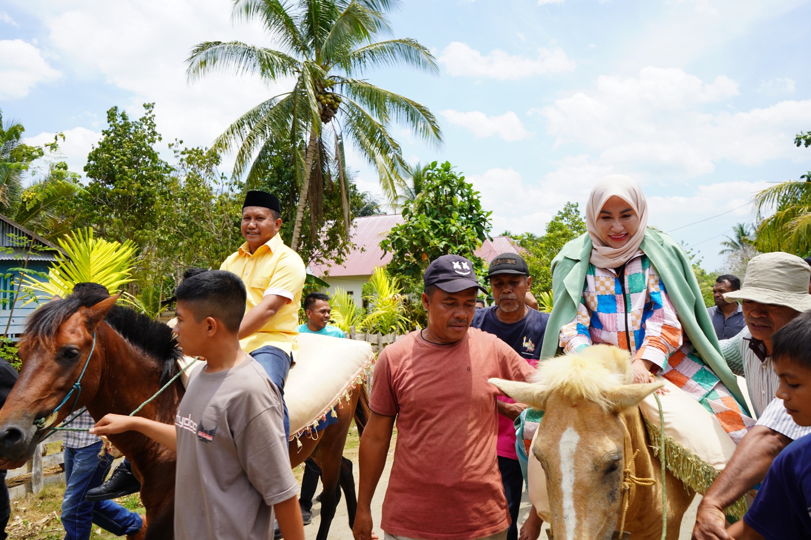 MUBAR, tirtamedia.id – Silahturahmi di Desa Latugho Kecamatan Lawa Kabupaten Muna Barat (Mubar) La Ode Darwin disambut antusias warga. Calon Bupati Mubar itu bersama istri Rikha Purwaningsih diarak menggunakan Kuda. Minggu (29/10/2023).