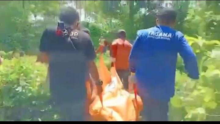 Saat ditemukan, korban mengenakan baju kaos coklat dan celana panjang berwarna hitam dengan posisi tergantung di pohon. Jasadnya sudah membengkak dan mengeluarkan aroma tak sedap.