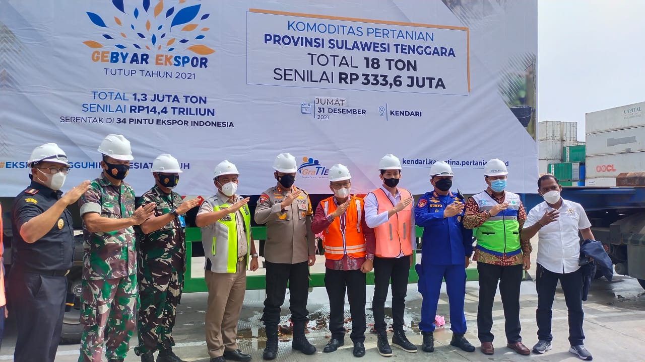 “Ekspor hari ini melengkapi jumlah ekspor secara nasional yang dilepas secara bersamaan di 34 pintu pengeluaran. Untuk Sultra sendiri, sepanjang 2021 ini nilai ekspor komoditas pertanian baik hewan maupun tumbuhan mencapai Rp 4,9 miliar,” imbuhnya.