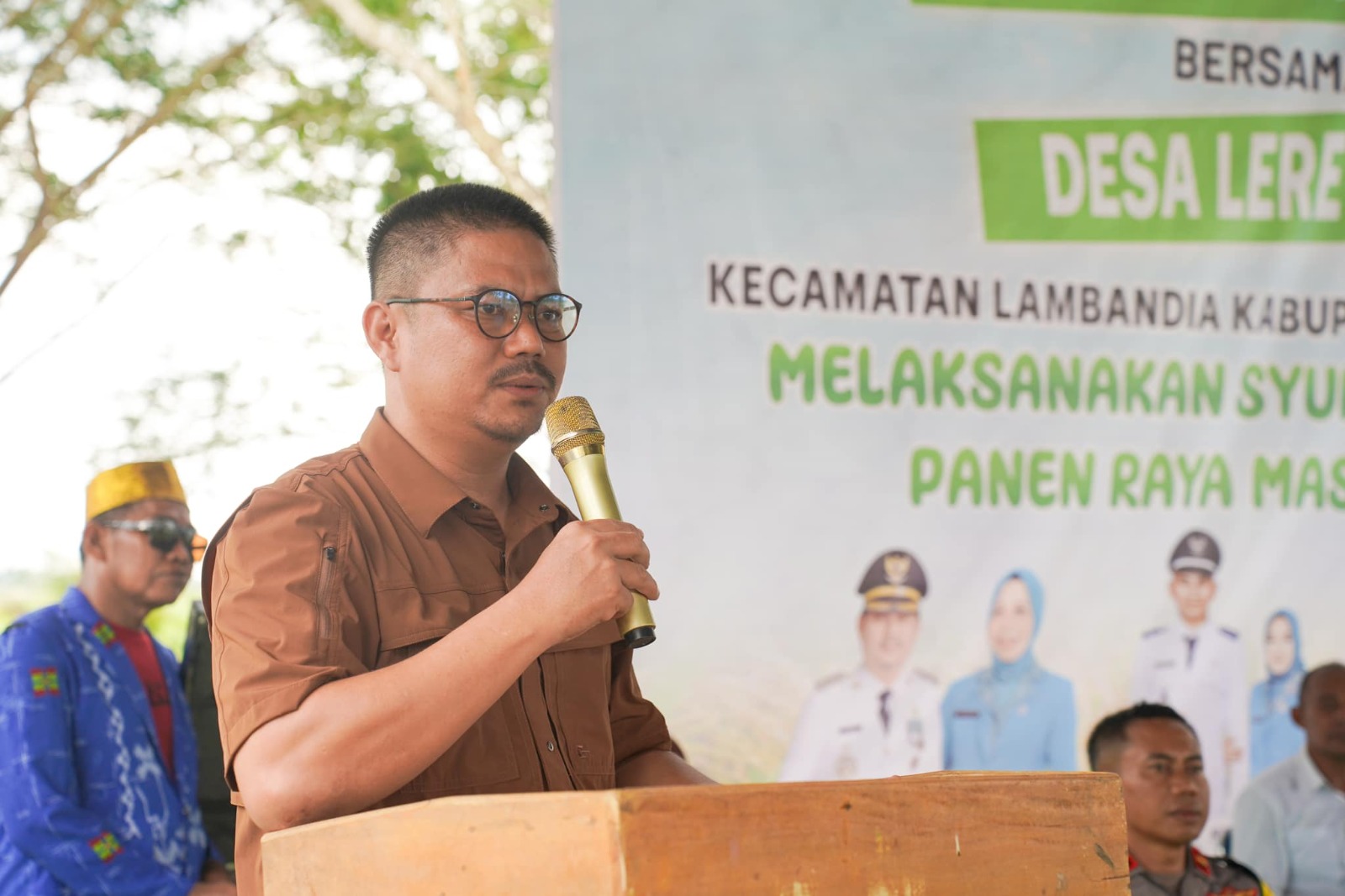 KOLTIM, tirtamedia.id – Bupati Kolaka Timur (Koltim) Abdul Azis dan ratusan warga di Desa Lere Jaya Kecamatan Lambandia Koltim gelar syukuran usai panen raya pada Kamis (30/11/2023).