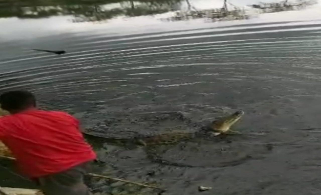 Dalam video berdurasi 25 detik dan video berdurasi 15 detik yang diabadikan warga terlihat buaya tersebut ditangkap dengan menggunakan sehelai tali yang diikat di bagian leher lalu ditarik hingga ke darat.